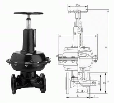 英標(biāo)常閉式氣動(dòng)襯膠隔膜閥外形結(jié)構(gòu)圖: