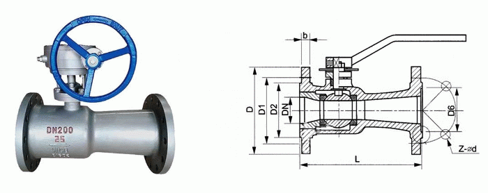 法蘭高溫球閥外形結(jié)構(gòu)圖:
