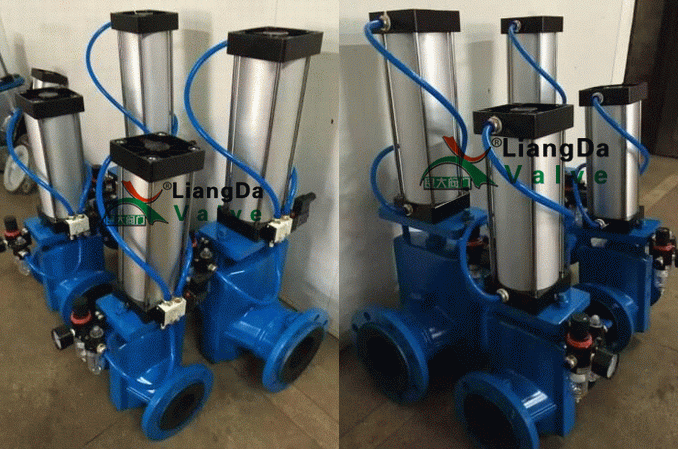 氣動(dòng)頭通氣時(shí),使閥桿向下運(yùn)動(dòng)來(lái)帶動(dòng)上下壓板以壓縮套管進(jìn)行關(guān)閉,反之即開(kāi)啟。壓板在拉桿之間上下往復(fù)運(yùn)動(dòng)完成閥門(mén)開(kāi)閉工作。