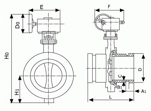 蝸輪溝槽信號(hào)蝶閥結(jié)構(gòu)圖: