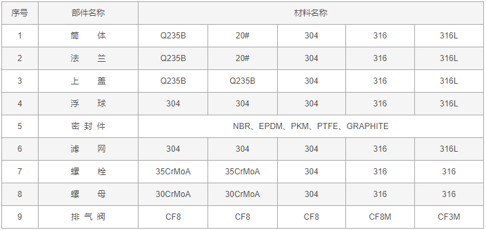導(dǎo)閥式消氣過(guò)濾器零件材料: