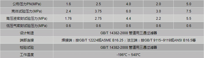 承插焊Y型過濾器主要由主管、斜管、法蘭和法蘭蓋、緊固件及過濾網(wǎng)、排污絲堵等零部件組成,其制造要求、試驗方法及檢驗規(guī)則等都是按《管道用三通過濾器》GB/T 14382-2008標準執(zhí)行,該Y型過濾器是用無縫鋼管由主管和斜管按45度角通過焊接工藝焊制而成的,它通過對焊、承插焊、螺紋、法蘭等方式與管道連接,斜管內(nèi)置有相應(yīng)過濾面積和過濾精度的過濾網(wǎng),本過濾器過濾網(wǎng)一般采用不銹鋼濾筒和絲網(wǎng)雙層結(jié)構(gòu),以30目/英寸作為標準網(wǎng),可攔截≥614μm粒徑的固體顆粒,也可根據(jù)客戶工況要求定做過濾網(wǎng)。
