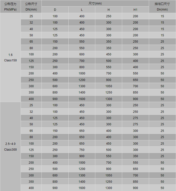 提籃式燃?xì)膺^濾器外形尺寸表:
