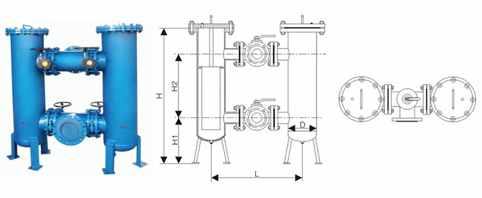 雙聯(lián)切換過濾器采用兩個單筒過濾器關(guān)聯(lián)組合結(jié)構(gòu),并通過三通球閥進行連接,這樣,需要清洗過濾器時,只要轉(zhuǎn)動三通球閥手柄將需要清洗的單筒過濾器的進水口和出水口斷開,就可單獨清洗該單筒過濾器,而另一個單筒過濾器可正常使用,這樣就保證了工業(yè)管路處于連續(xù)工作狀態(tài)。其亦可單筒使用,只需去掉共同機座,其余尺寸不變。本產(chǎn)品結(jié)構(gòu)新穎合理,操作簡便,密封性好,流通能力強,可以連續(xù)工作且整個切換過程可以實現(xiàn)過濾器前、后無壓差變化。