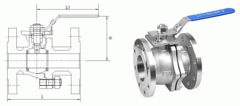 兩片式德標(biāo)球閥外形結(jié)構(gòu)圖: