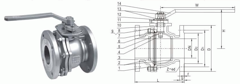 德標法蘭球閥外形結(jié)構(gòu)圖: