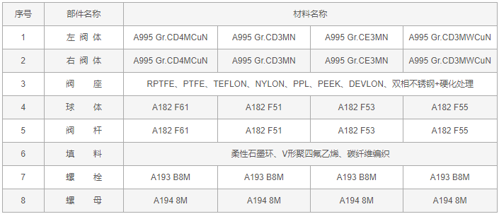 美標(biāo)雙相鋼球閥是一種主體采用ASTM A995標(biāo)準(zhǔn)中4A(CD3MN)、5A(CE3MN)、6A(CD3MWCuN)、1B(CD4MCuN)或ASTM A182規(guī)范中F51(S31803)、F53(S32750)、F55(S32760)、F61(S32550)、F60(S32205)以及SAF系列中SAF2205、SAF2507等雙相鋼材料鑄造或鍛造而成的球閥,該種材質(zhì)綜合了鐵素體和奧氏體不銹鋼的優(yōu)點(diǎn),具有超塑性、高韌性、高強(qiáng)度等特點(diǎn)。在抗腐蝕方面,本產(chǎn)品特適合介質(zhì)環(huán)境比較惡劣(如海水,氯離子含量較高及含硫化物)的條件下使用。
