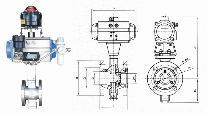 防爆V型氣動切斷閥外形結(jié)構(gòu)圖: