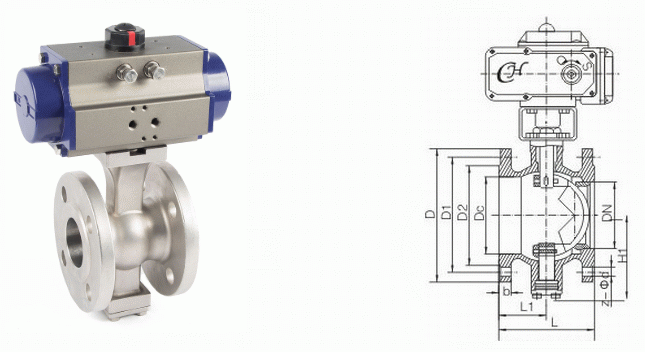 V型氣動(dòng)球閥外形結(jié)構(gòu)圖: