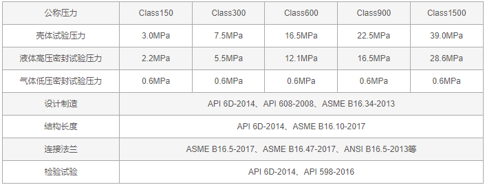 美標(biāo)固定式球閥產(chǎn)品的設(shè)計和制造符合《API 6D-2014管線和管道閥門規(guī)范》、《API 608-2008法蘭、螺紋和焊連接的金屬球閥》、《ASME B16.34-2013法蘭、螺紋和焊接端連接的閥門》要求,其結(jié)構(gòu)長度可采用《API 6D-2014管線和管道閥門規(guī)范》、《ASME B16.10-2017閥門結(jié)構(gòu)長度》等,連接端按照ASME B16.5、ASME B16.47、ANSI B16.5、ASME B16.25等尺寸,檢驗和試驗遵循《API 6D-2014管線和管道閥門規(guī)范》、《API 598-2016閥門的檢查和試驗》標(biāo)準(zhǔn)。