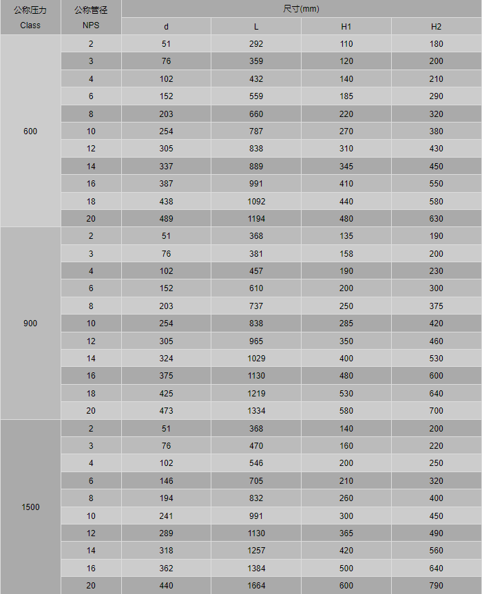 高壓球閥外形尺寸表: