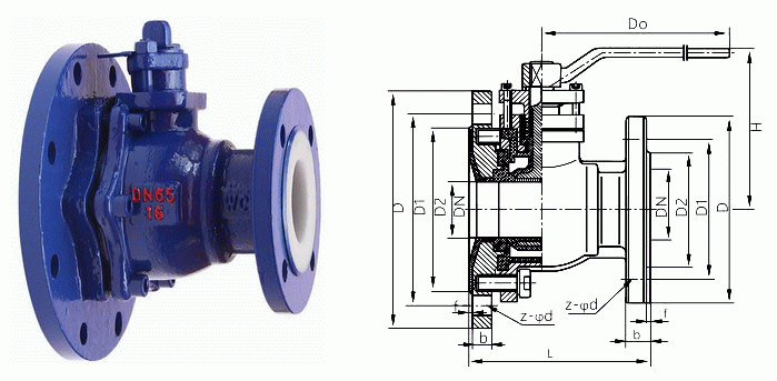 襯氟變徑球閥球體在開啟時,放料通道上下直通,呈直管狀,排料流阻小,積料少,易清洗,閥座主密封面與球體球面始終吻合,密封面不受沖蝕,不粘介質(zhì),開閉力矩小,使用壽命長,球體密封比壓隨反應(yīng)釜內(nèi)壓力,上升而增高,當(dāng)真空反應(yīng)時同樣可隨真空度上升而增高,密封可靠,不易泄漏,閥桿橫向裝于閥體一側(cè),閥桿填料只在開閉動作瞬時受壓,外泄漏的可能很小,聚四氟乙烯或填充四氟乙烯的密封圈,始終不粘結(jié)物料,不會有粘住球體的現(xiàn)象。
