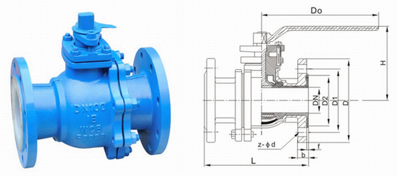 Q41F4襯氟球閥外形結(jié)構(gòu)圖: