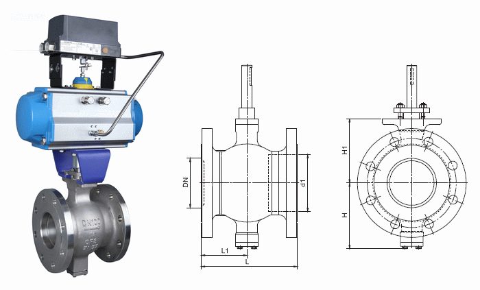 氣動(dòng)V型球閥外形結(jié)構(gòu)圖: