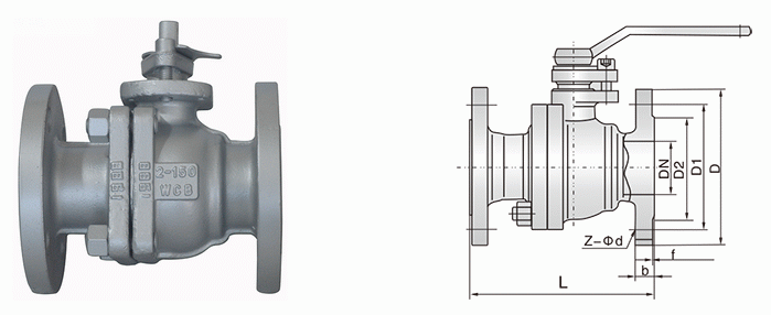 手動(dòng)美標(biāo)球閥外形結(jié)構(gòu)圖: