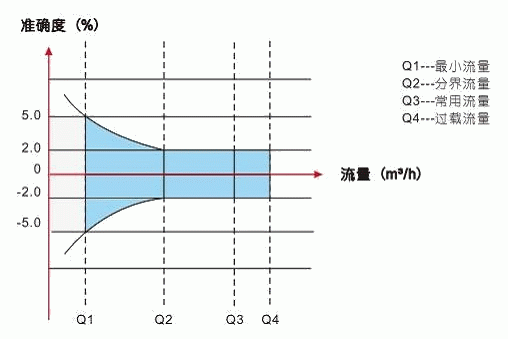 Q3/Q1 | Q2/Q1 | 最小流量Q1(m3/h) | 分界流量Q2(m3/h) | 常用流量Q3(m3/h) | 過載流量Q4(m3/h) |