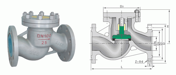 法蘭氨用止回閥閥瓣利用流體壓差和自身的重量實現(xiàn)升降,適用于大部分的罐區(qū)水平管路上,自動阻止介質(zhì)逆流,保護(hù)上游設(shè)備。安裝方式:法蘭氨用止回閥在管路上,只能水平安裝。