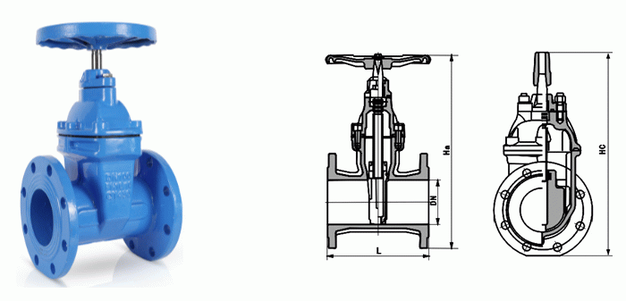 手動軟密封閘閥外形結(jié)構(gòu)圖: